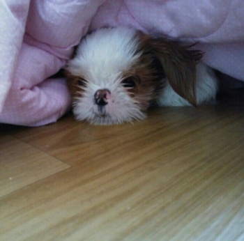 사실 몇달전에 시츄2마리 분양부탁하셔서 다 지인한테보냈는데 그때시츄가 귀여워서그랬는지 요번시츄도 귀여워서 제옆에 잠시라도 있게하고싶어서 어제 아예 아주머니한테 돈드리고 우리가 일단봐주고 분양해주겠다했네요;