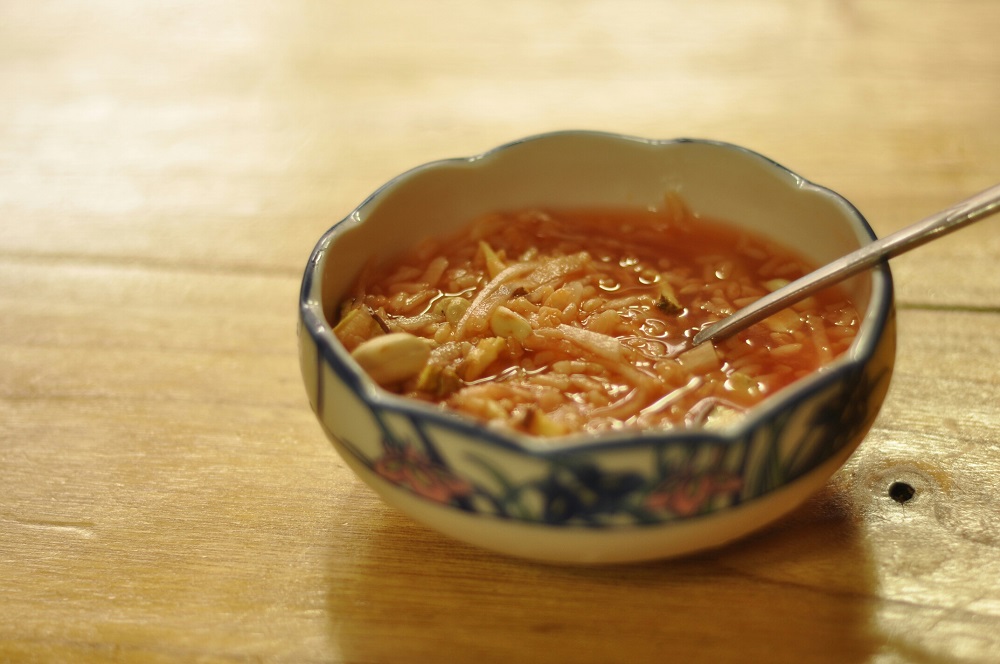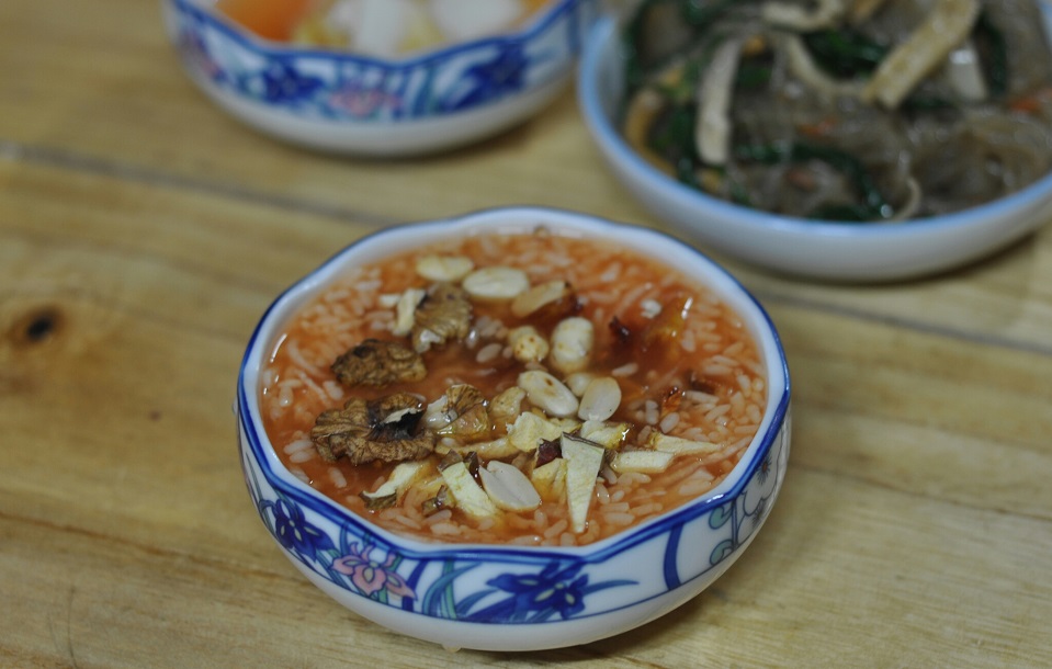 새콤들큰한 와중에 은은한 생강향이 풍깁니다. 집에서 기른 땅콩, 호두 등등 꾸미? 를 듬뿍 얹어 먹으면 더 맛나요ㅋ