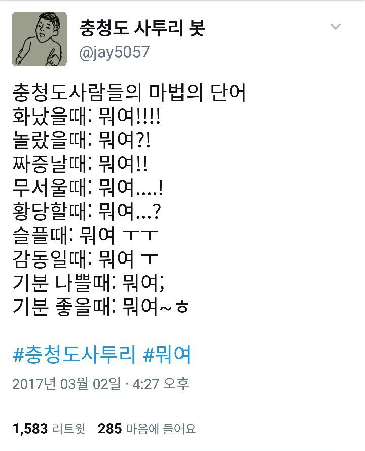 ㅋㅋㅋㅋㅋㅋㅋㅋㅋㅋ청주에 살고있는데 온 사방에서 들리는 말이네요.ㅋㅋㅋㅋㅋ |