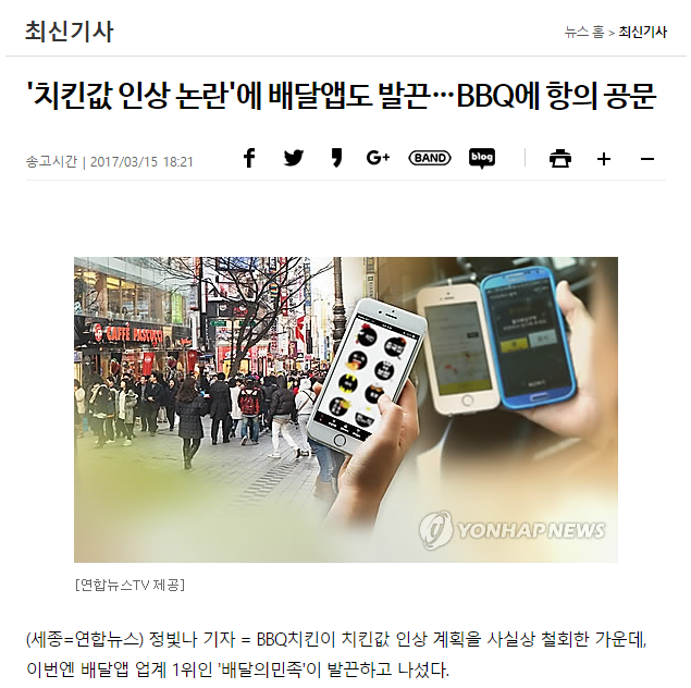 2015년 8월부터 배달의 민족은 수수료 0%인데 수수료를 문제로 치킨값 이상을 결정한 BBQ때문에 항의공문을 보냈다네요.