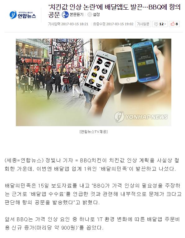 ㅋㅋㅋ BBQ 배달앱에서 빼버리면 가맹점주들 존나 좋아하것네? 제너시스 띱때끼들.