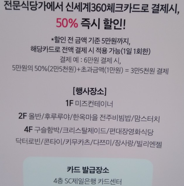 아... 신세계sc체크카드가 있어야 하는군요.. ㅠㅜ |