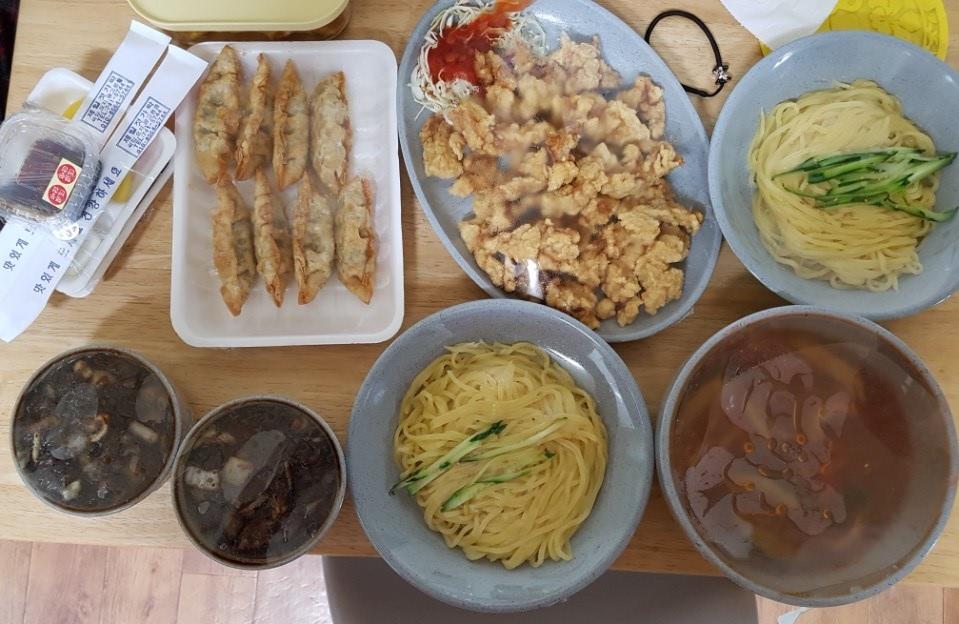 군만두는 맛배기로 1개 빼먹고 그대로 남겼습니다. 야식이나 내일 간식으로 먹어야겠네요..