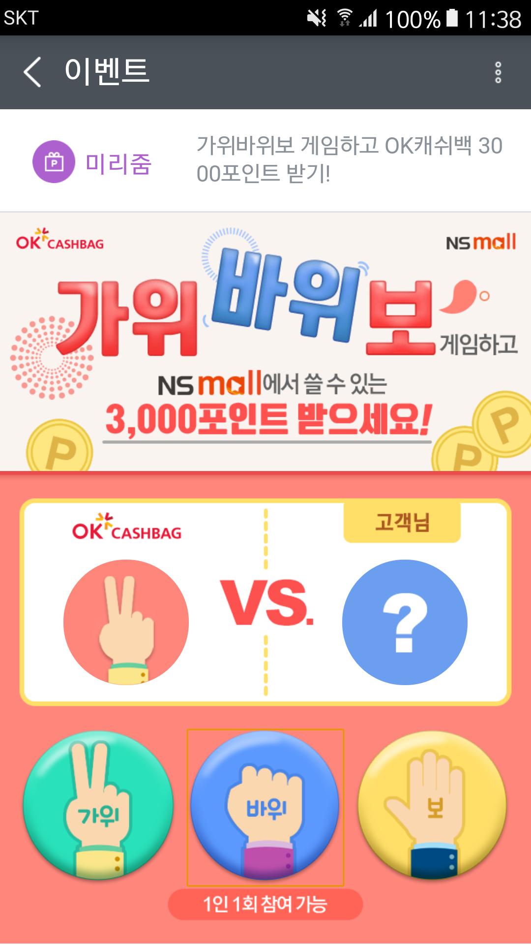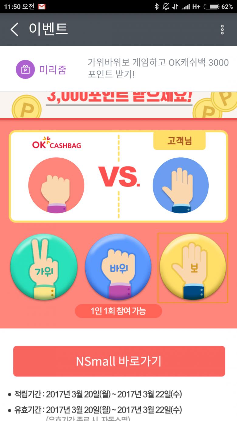 오케이캐쉬백 ns몰 미리줌 3천포 이벤트 또 하네요