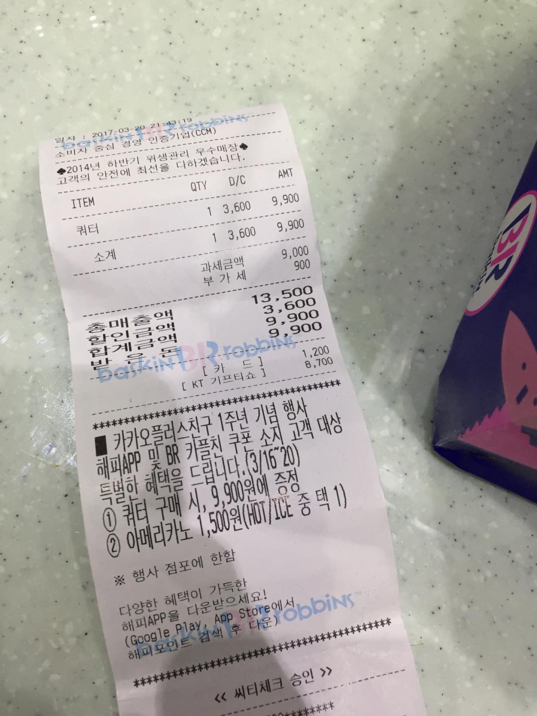 배라 배라~ 요샌 레이니 쿠폰을 안주네요 |