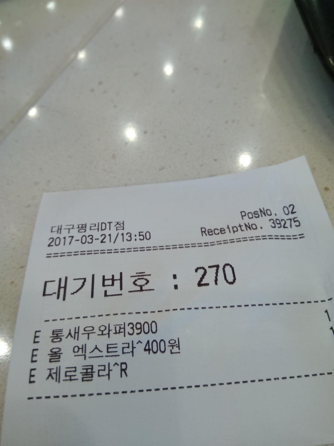 통새우와퍼에 올엑이란것을 첨시켜봤는데
