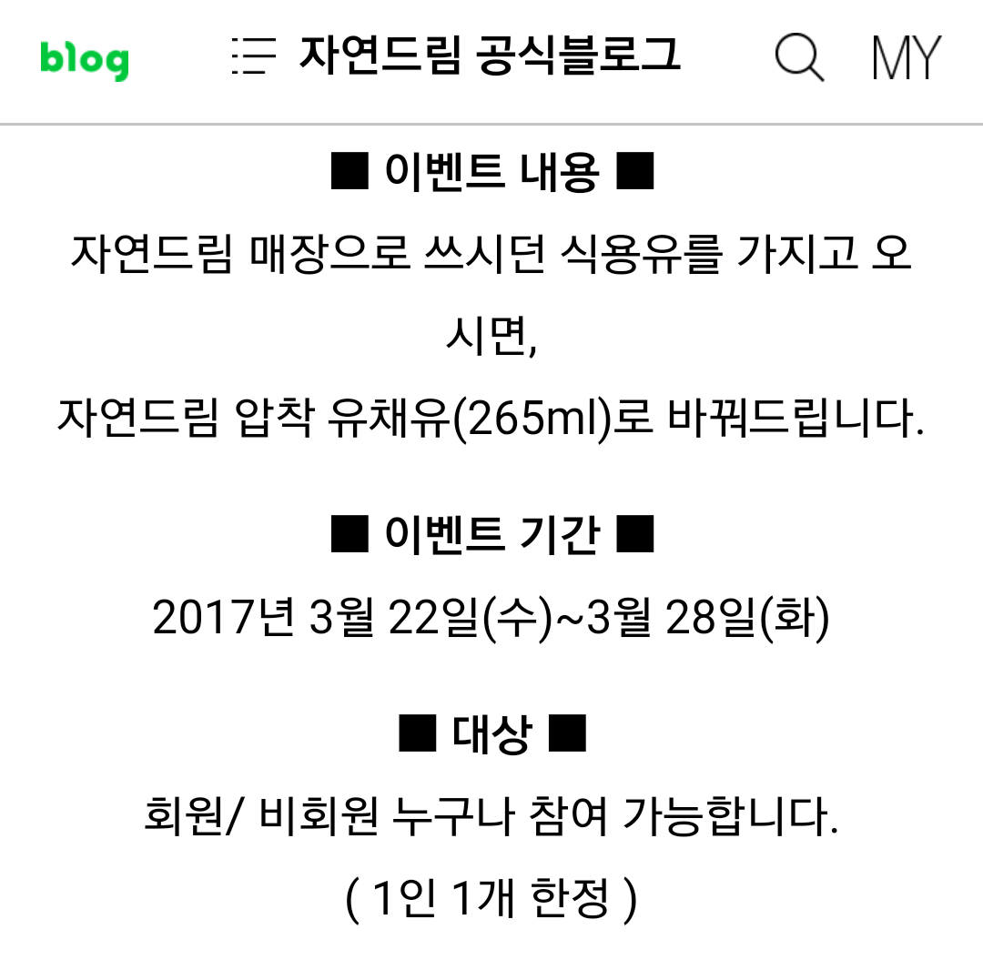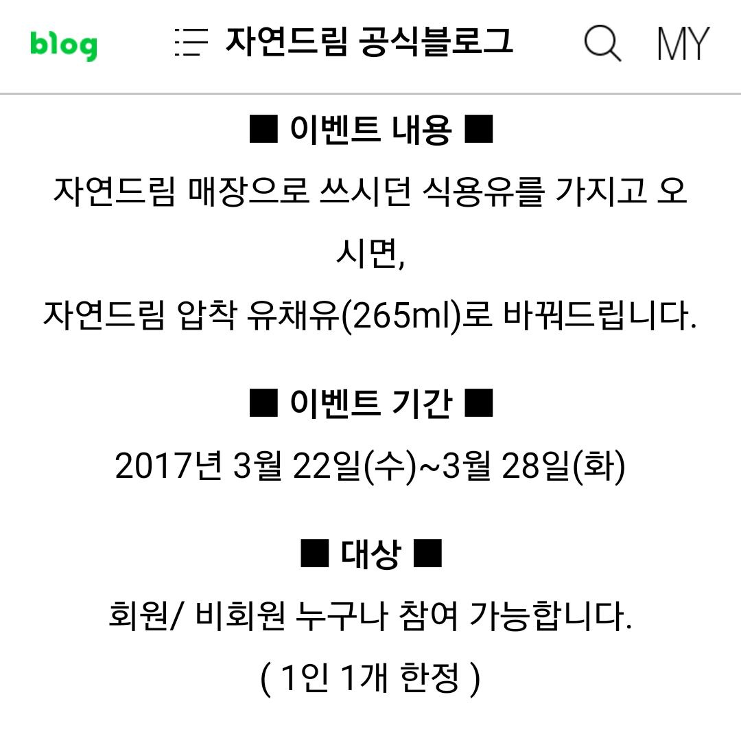 자연드림에서 이벤트가 올라왔길래 공유 합니다.