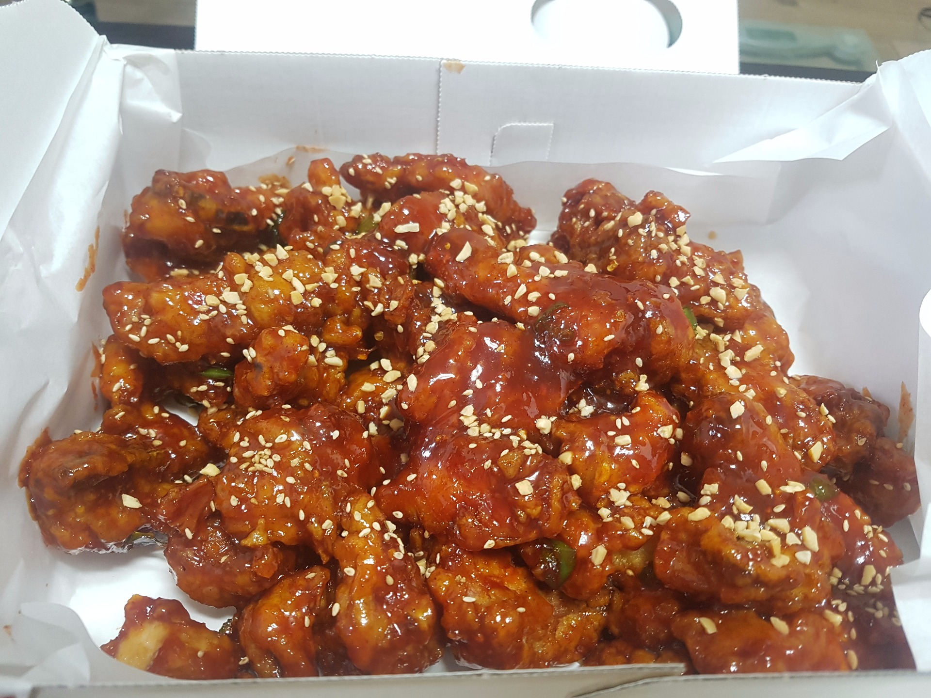 양념치킨은 따뜻 할때가 더 맛있죠ㅎ