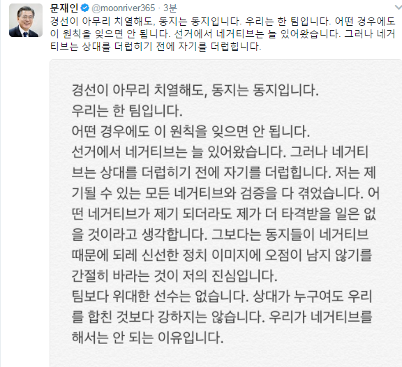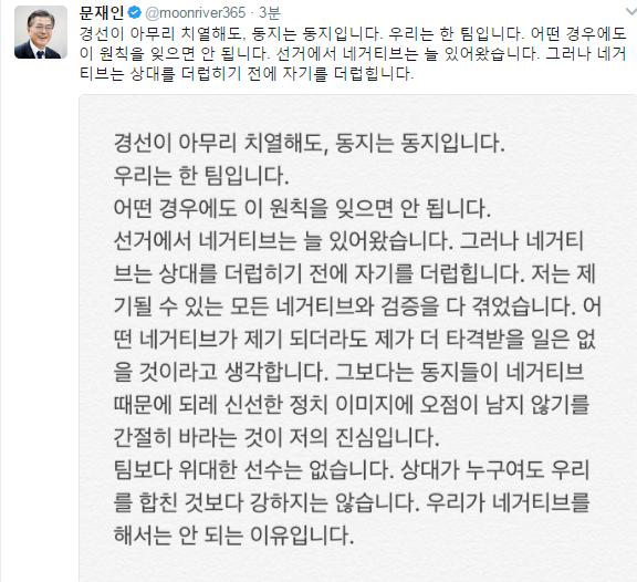 문재인이 자기를 네거티브로 비방하고 공격해서....