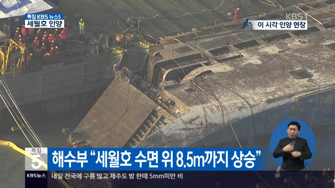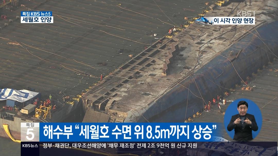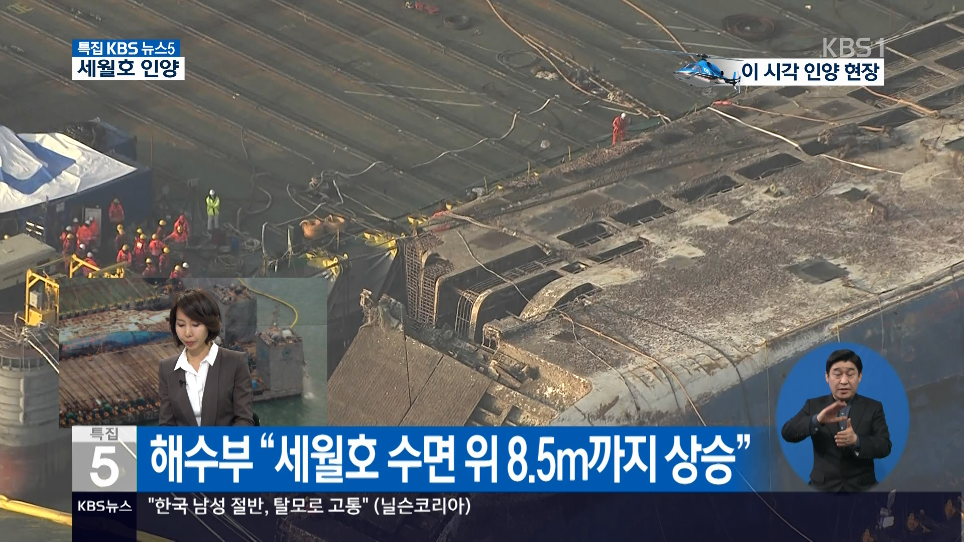 세월호 인양 장면 (TV 대형 화면 캡쳐 1920*1080)