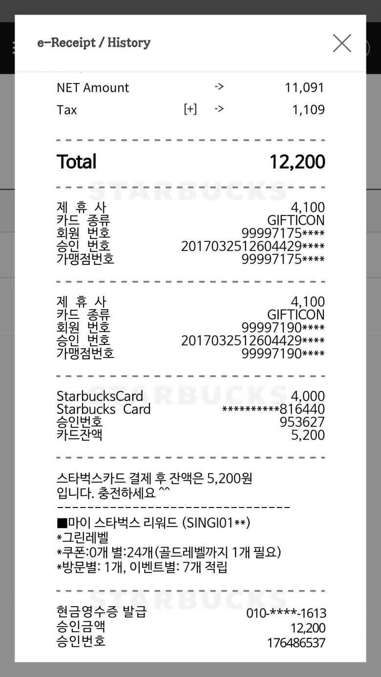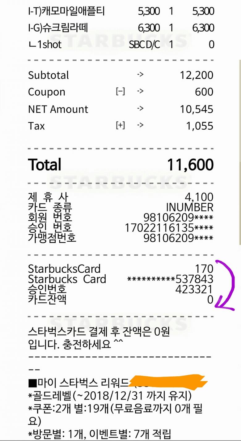 네 ㅋㅋ 스벅카드로 800원이상 결제하시면 가능해요