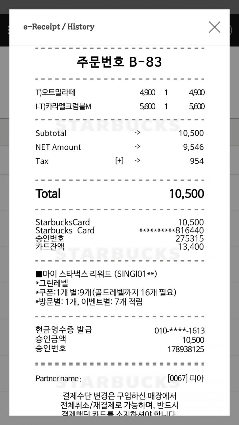 영수증별로 별쌓이는거 아닌가요? ㄷㄷ;