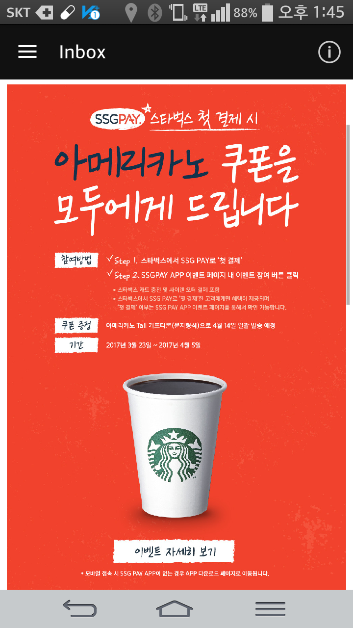 ssg페이 첫결제인가요 ssg페이로 스벅 첫 결제시 인가요~ |