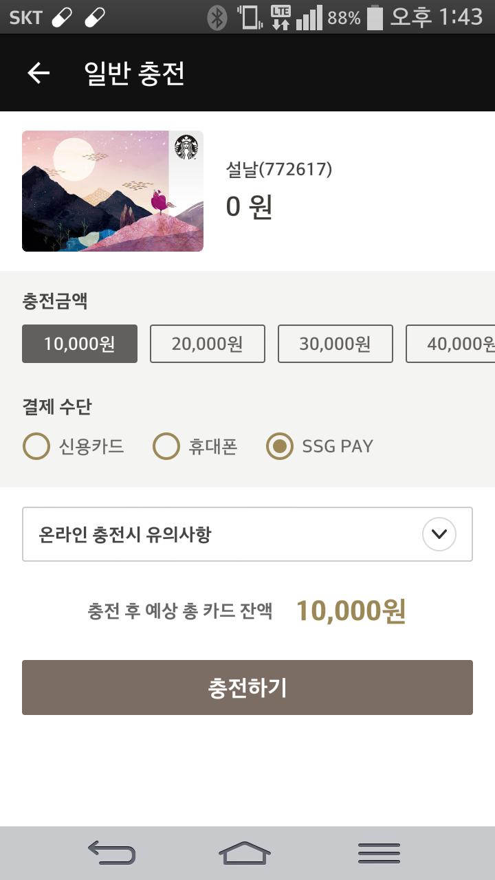 어플 이용해서 SSG 선택하시고 충전 하신다음