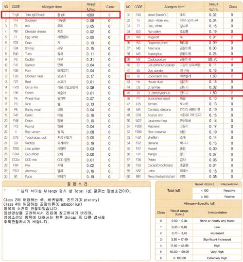 곰팡이랑 진드기 나오는 걸 보니 급성 알러지 검사인가요?