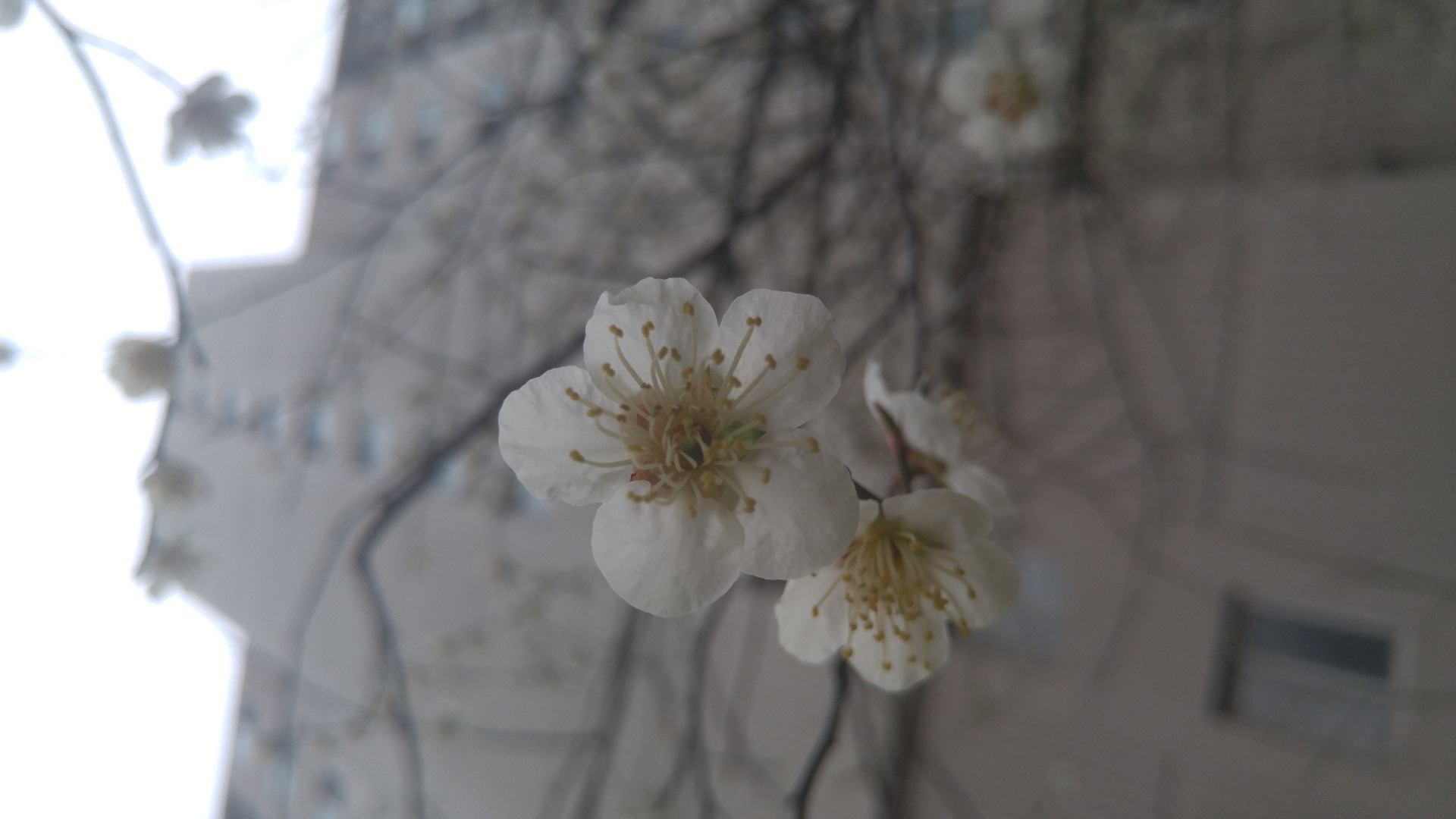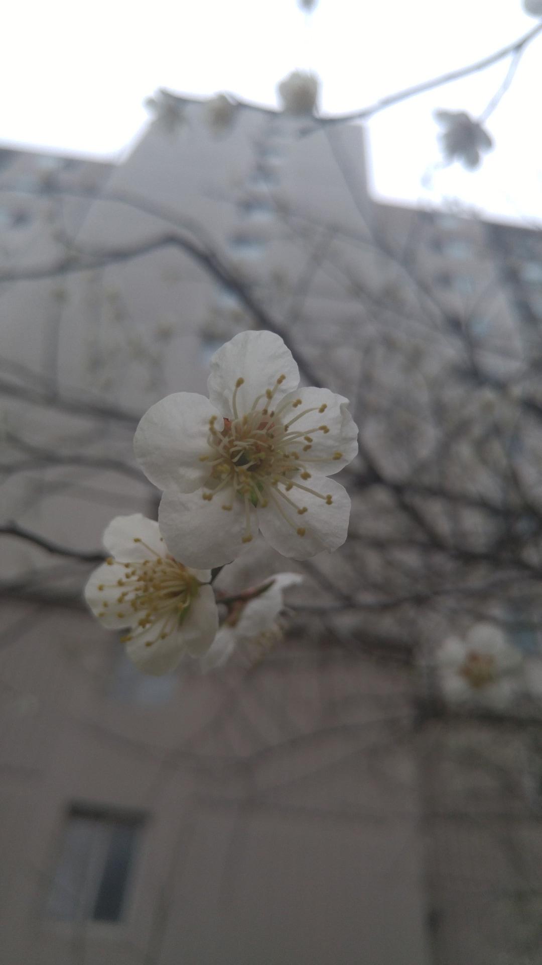 매화 같아요.. 저는 분홍색 매화만 생각했는데 흰색도 있나봐요 |