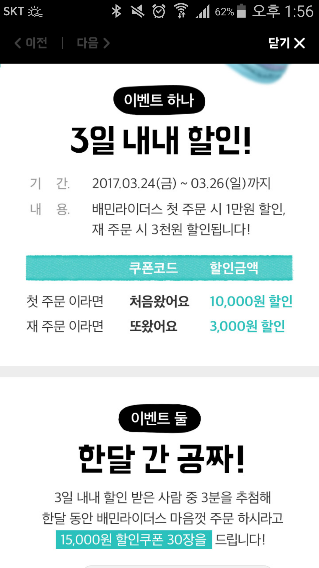 (끌올)배민라이더스 첫주문 1만원 할인하네요 > 자유게시판