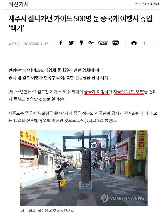 대한민국.정부 : 중국 사드 보복 없다 ->대한민국.정부: 중국 사드 보복 지네가 더 피해다!!!!