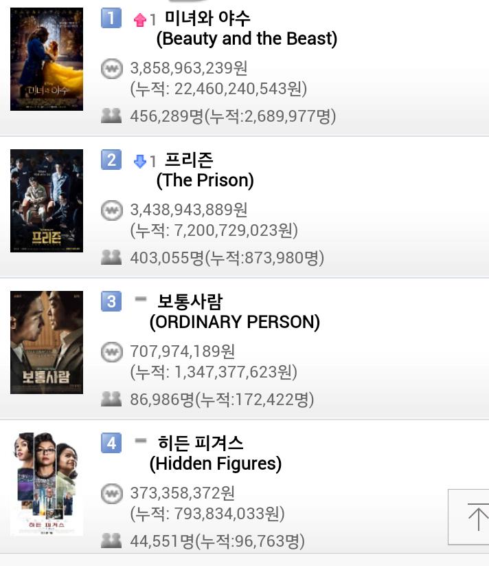 아마도 미녀와야수+프리즌 극장가 스크린 60~70% 장악하고 있죠