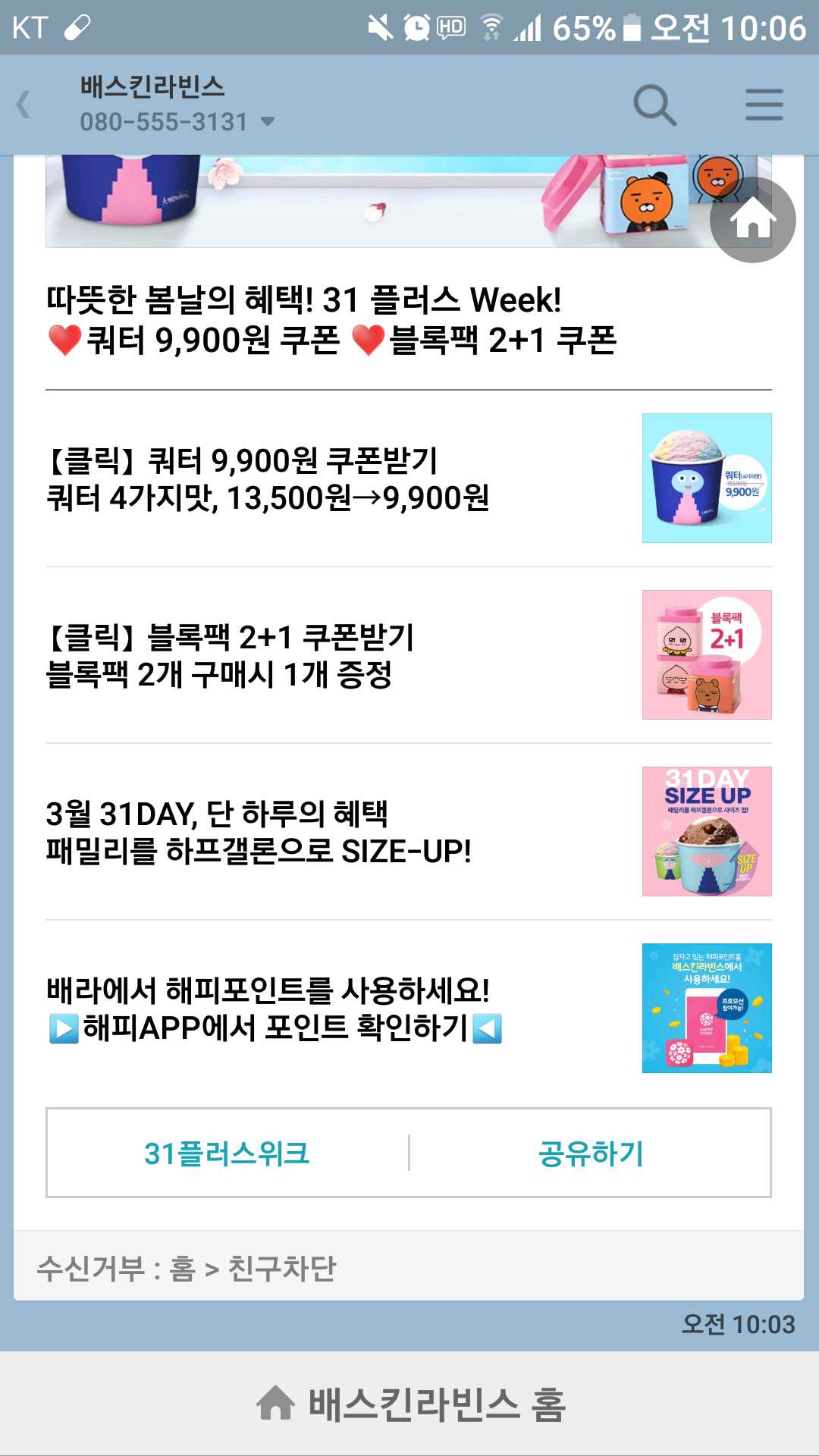 배스킨라빈스...10년 전에 비하면 가격이 너무 많이 올랐네요 ㅎㅎ