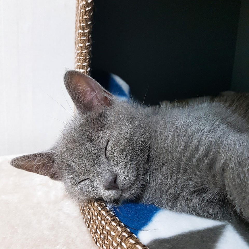 집으로 돌아오니 콜라도 피곤한지 캣타워 올라가서 세상모르게 자네요 .