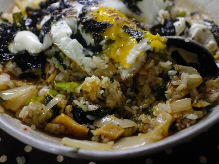 볶고 나서 후라이, 김 넣고 비볐으니 비빔밥도 맞다고 해주세요! |