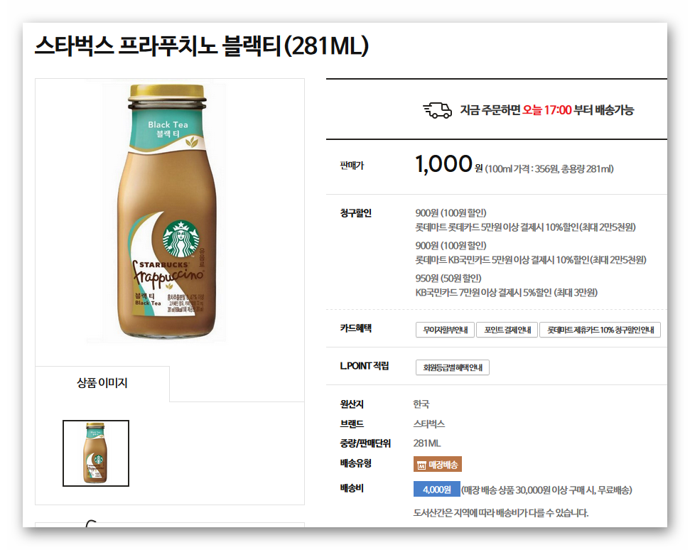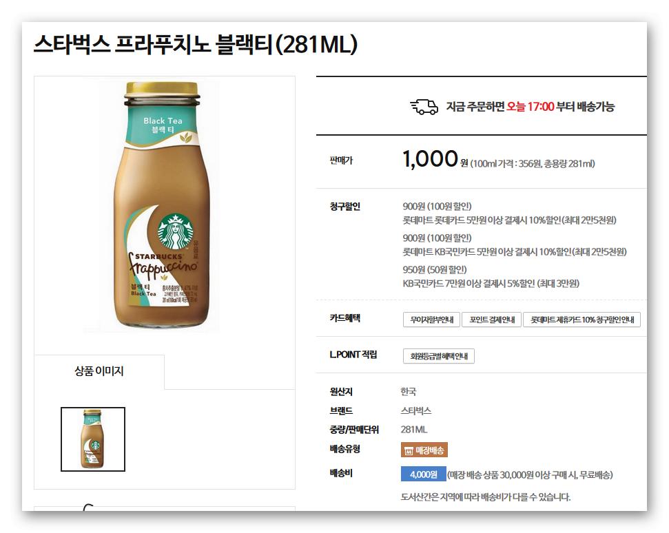 롯x마트에서 스벅블랙티 병에 든거 싸게 파네요 > 자유게시판