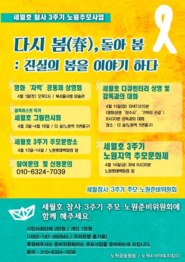 <세월호 참사 3주기 추모 노원준비위원회에 함께 해주세요.>