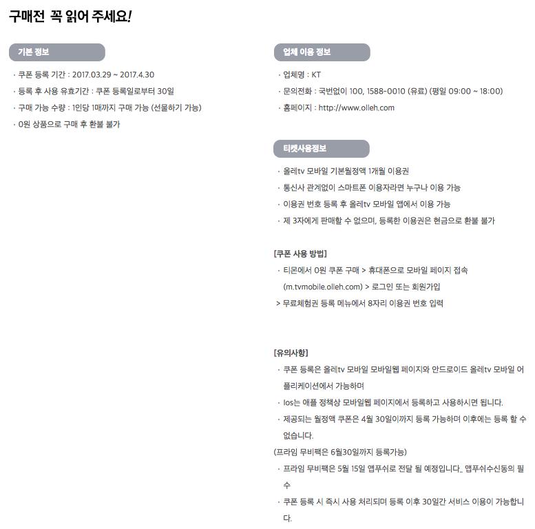 티몬에서 올레tv모바일 1개월 이용권 무료딜이 있네요 > 자유게시판