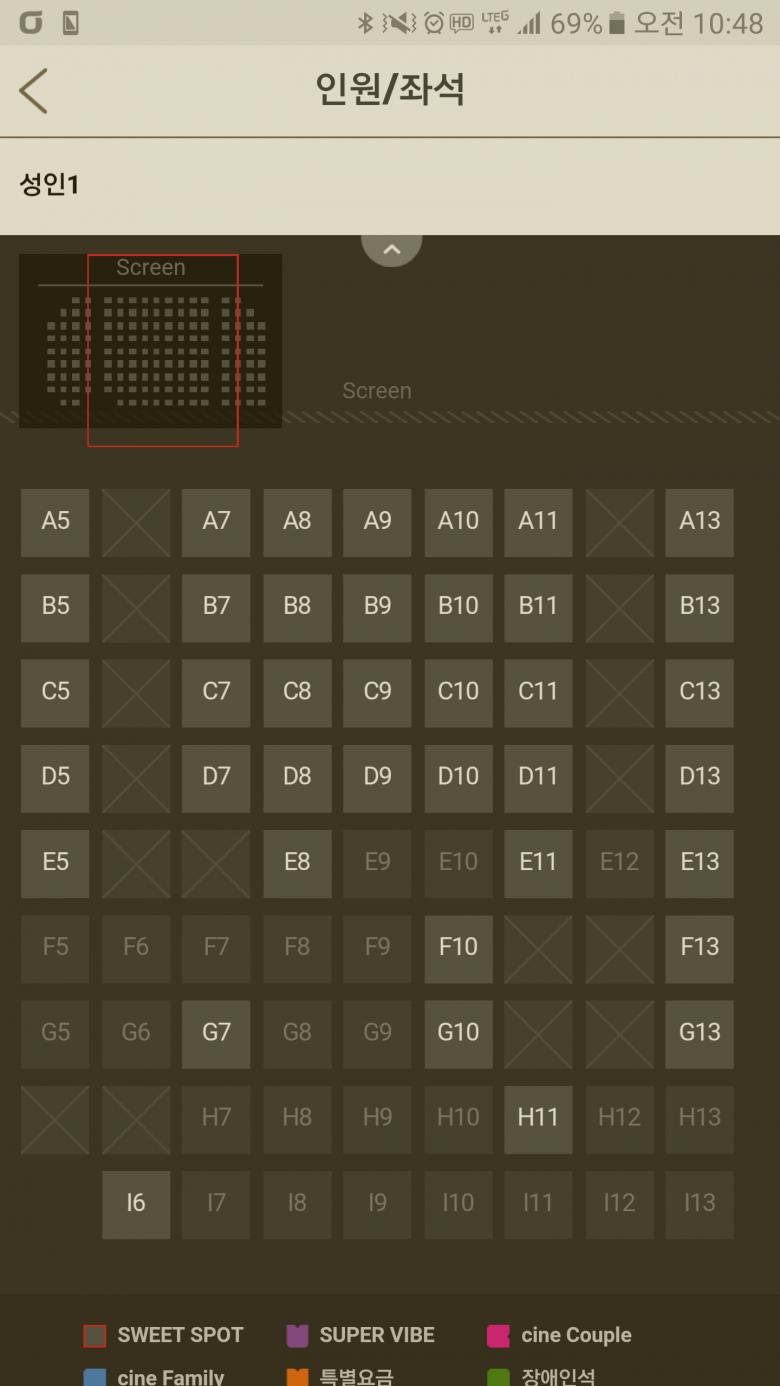 같은 가격의 연두색 자리 중에서 자리변경해주는데 문젠 문화의 날이라고 자리가 없어서 변경하기가 힘들다는게 문제.. ㅎ |