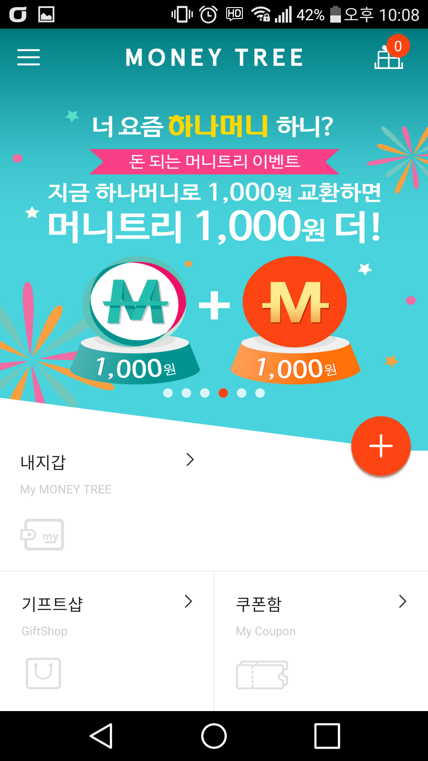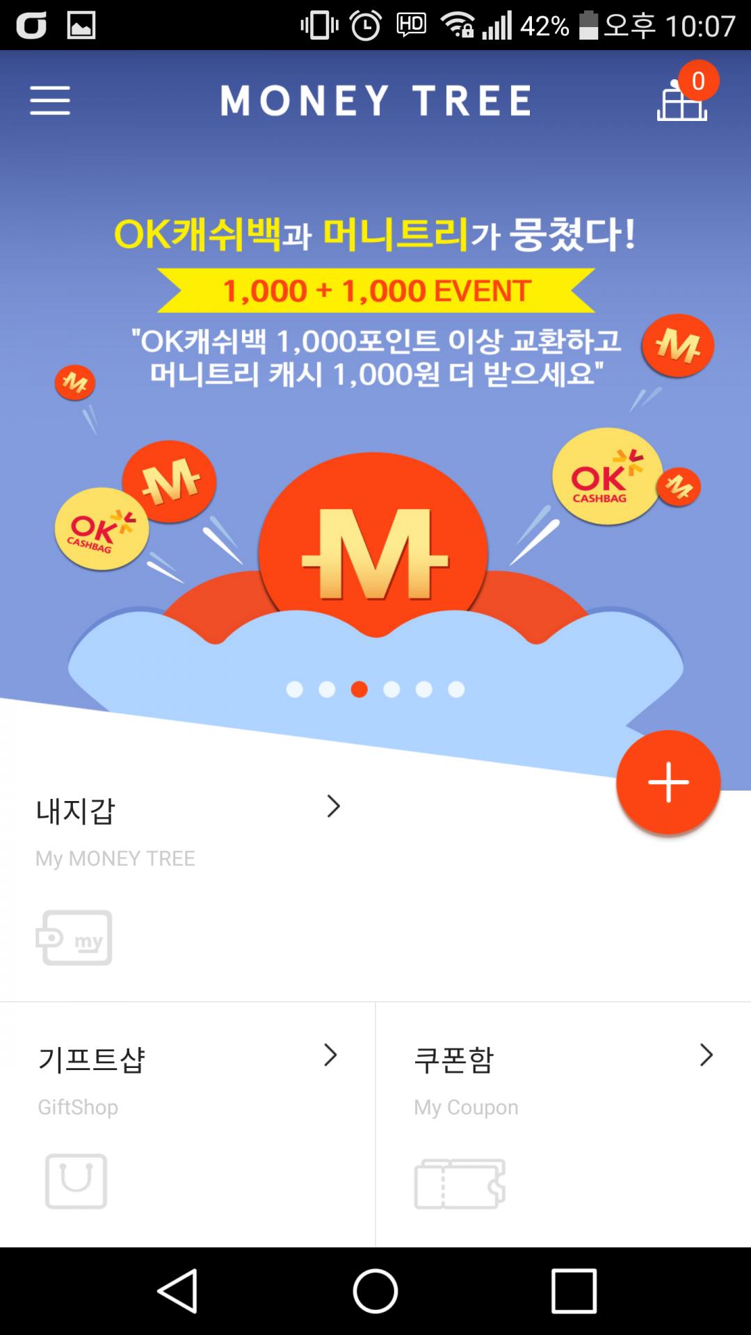 하나머니→머니트리 1000머니 전환시 추가 1000 적립