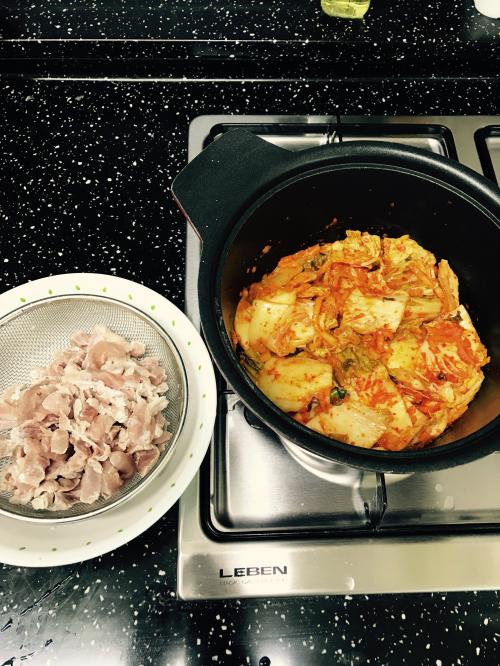 제가 끓이는 김치찌개는 고기를 먼저 그릇에 담고 뜨거운 물 부어 1-2분 둬요. 그 다음 채에 받쳐 식수로 살짝 씻어주고,(그대로 써도 무방) 냄비에 참기름+오일 둘러 김치를 오래오래 볶아줍니다. 그 다음 고기를 넣고 어우러지게 볶다가 육수나 쌀뜬물 넣고 끓기시작하면 중약불로 줄여 세월아네월아~ 그냥 둬요 ㅎ