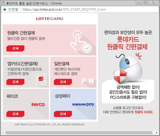 위 롯데카드의 경우엔 삼성페이 결제가 있는데요.