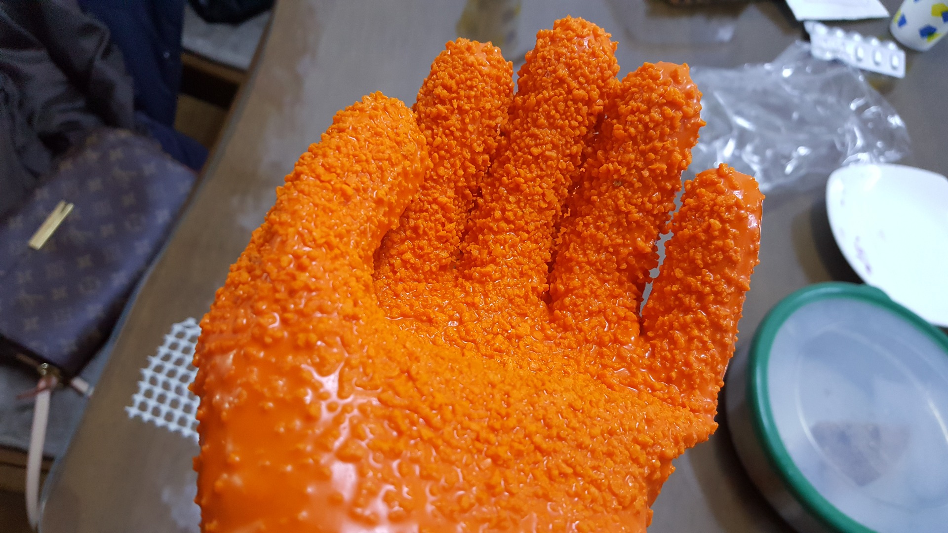 튀김으로 만든 장갑인줄......배고픈가봐요 | ||