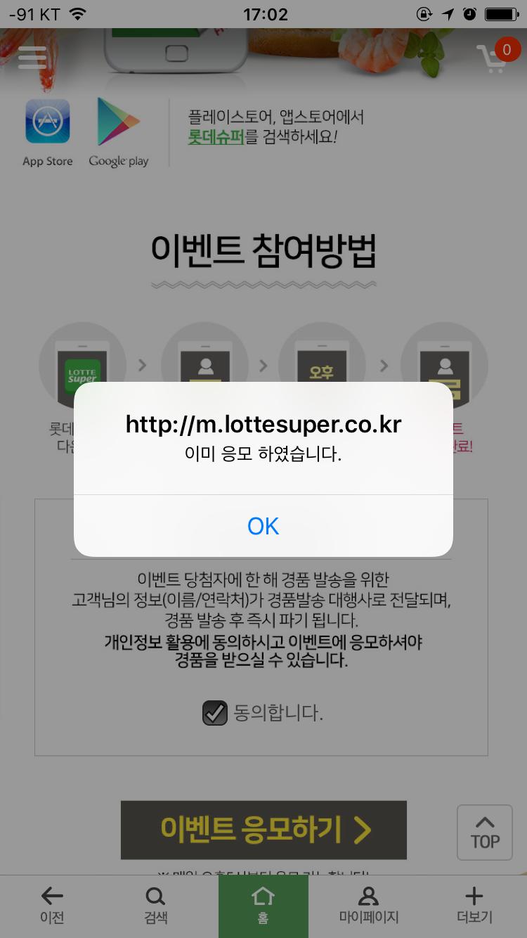 정상응모된 아이디로 다시 시도해보면 같은 메시지떠요