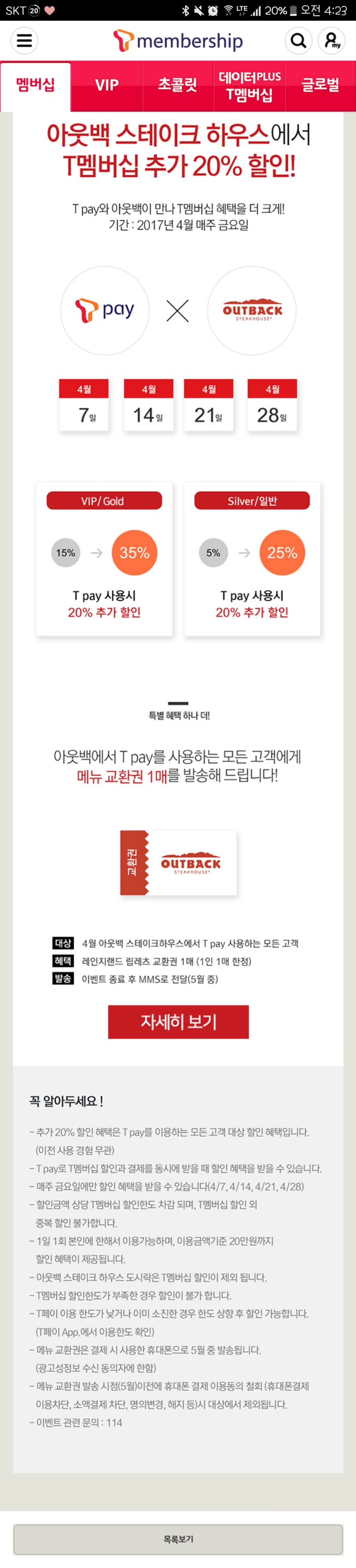 T페이 아웃백 4월 최대 35%할인 하네요 (매주 금요일) > 자유게시판