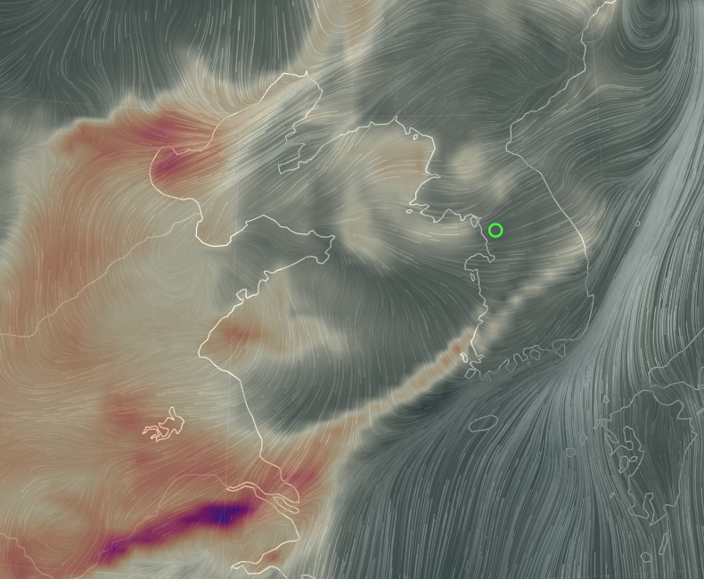 https://earth.nullschool.net/#current/chem/surface/level/overlay=cosc/orthographic=123.89,34.60,3000/loc=127.025,37.513