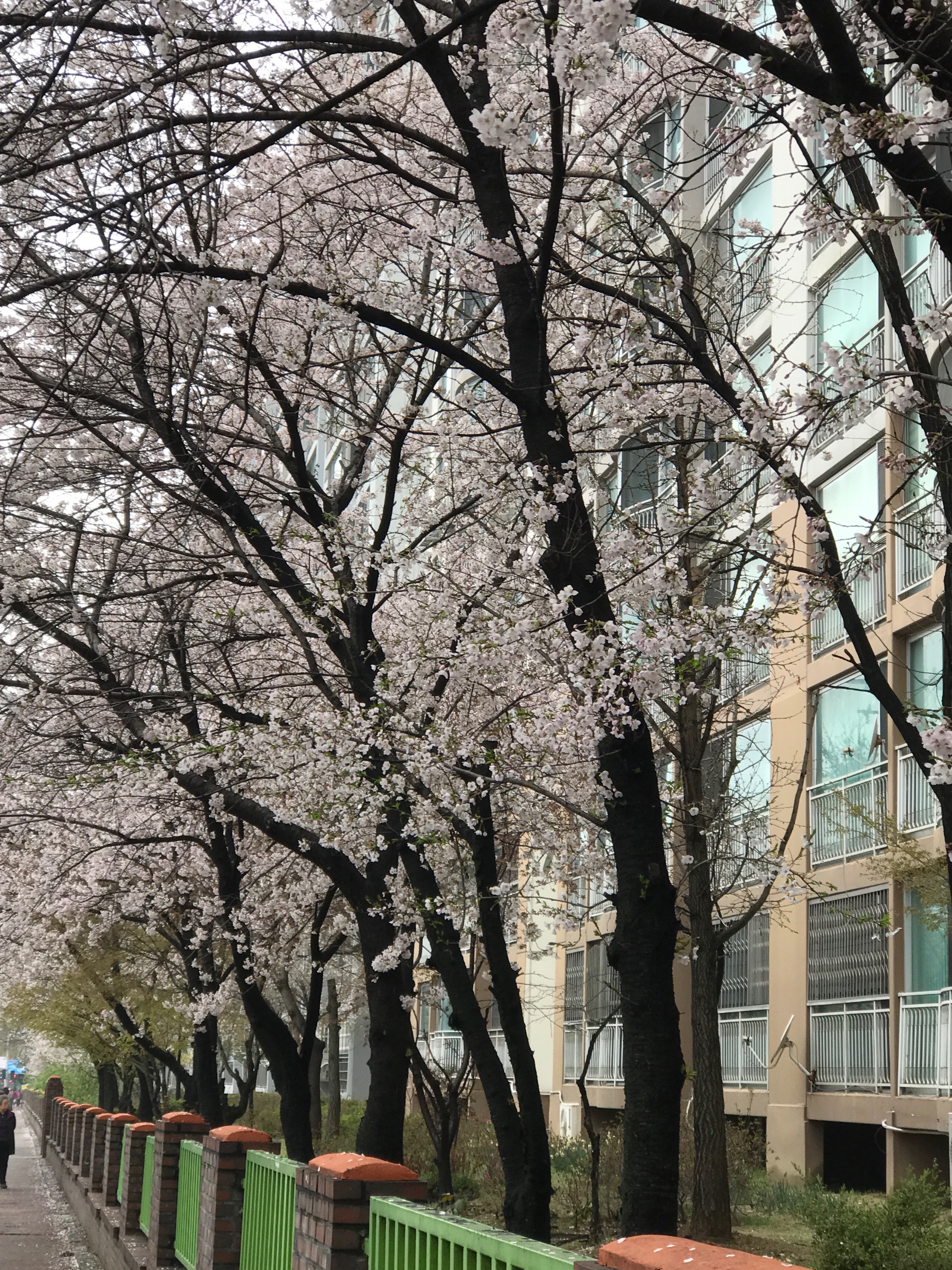 아파트 길가에 벚꽃이 많이 피어서 살짝 흩날리기도 하더라구요.