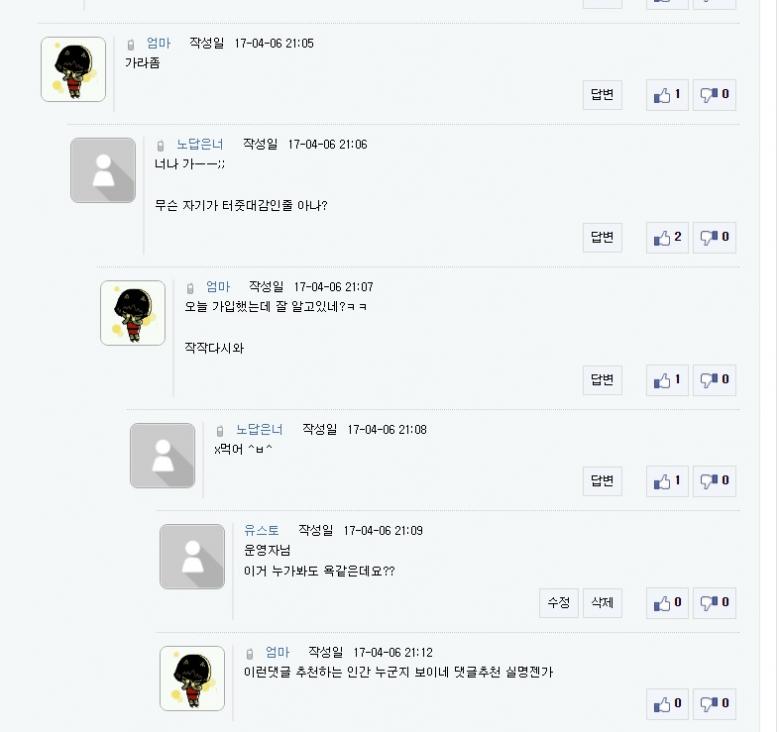 반대의 의견이 있으시면 당당히 적으시되 나와 생각이 다르다고 입을 틀어막지는 맙시다. |