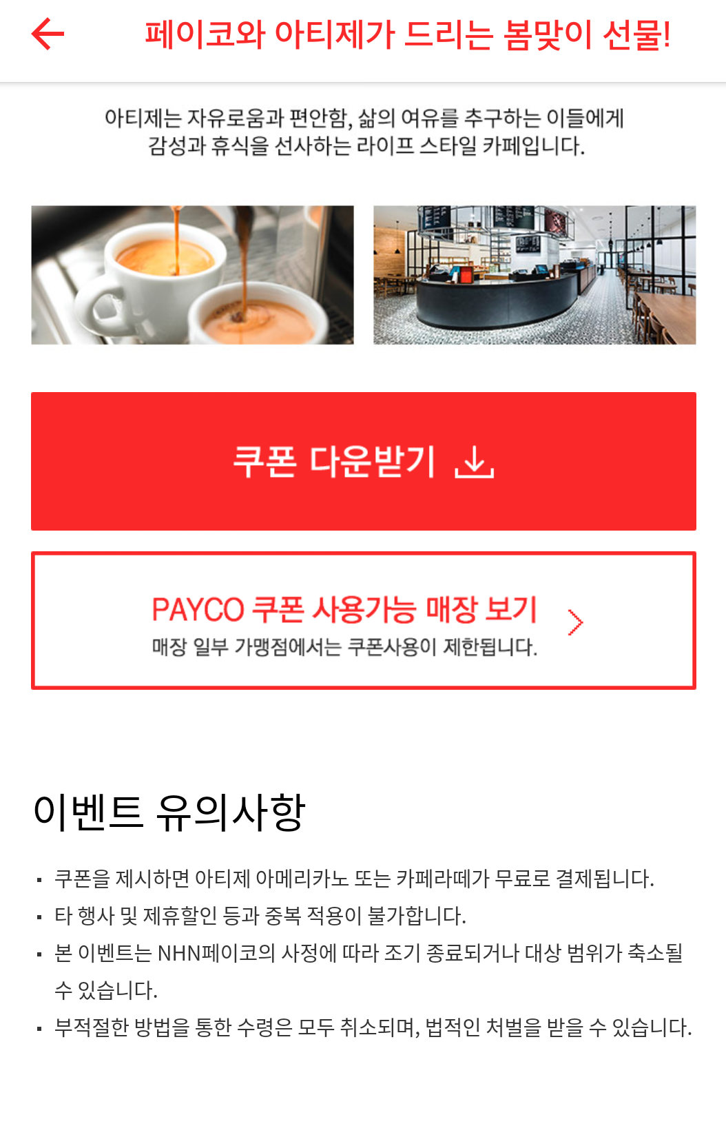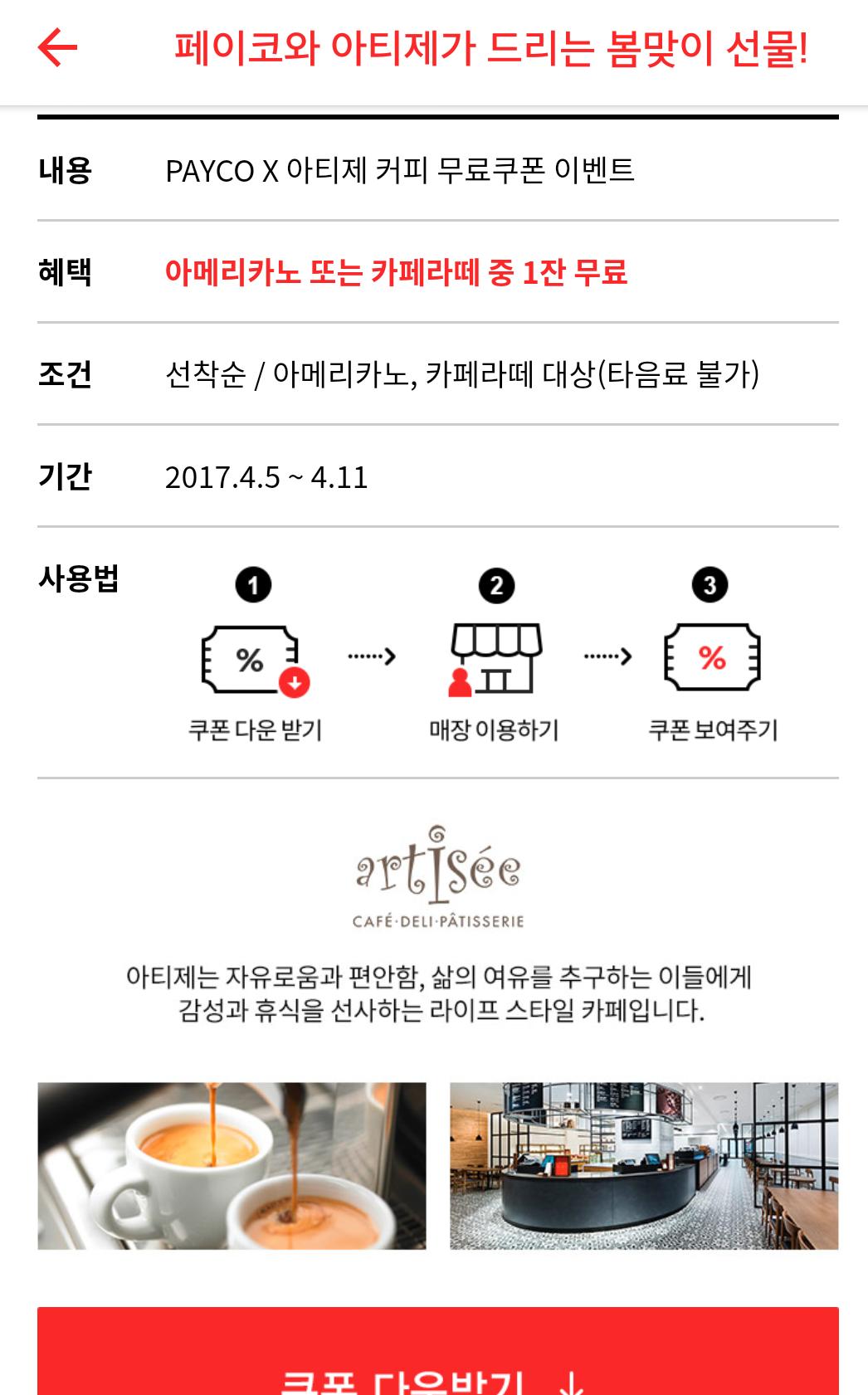 오늘 벚꽃볼겸 아티제여의공원점가서 무료쿠폰 교환했구요