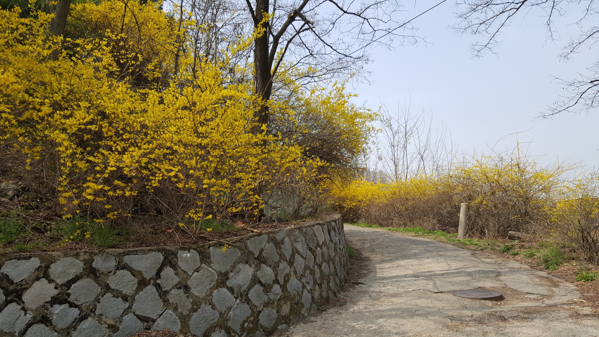 아무리 올라가도 벚꽃은 없고 개나리랑 산수유 있어서 ㅜ.ㅜ