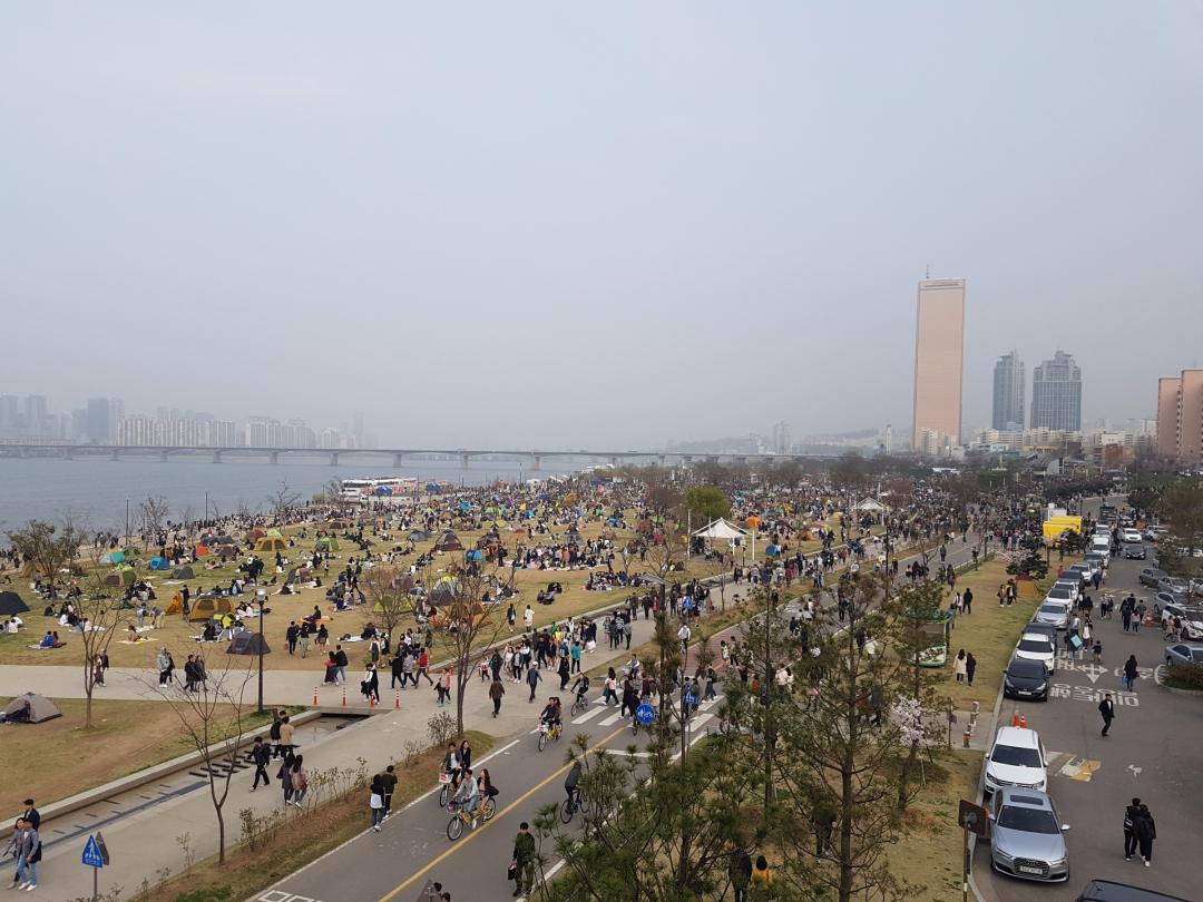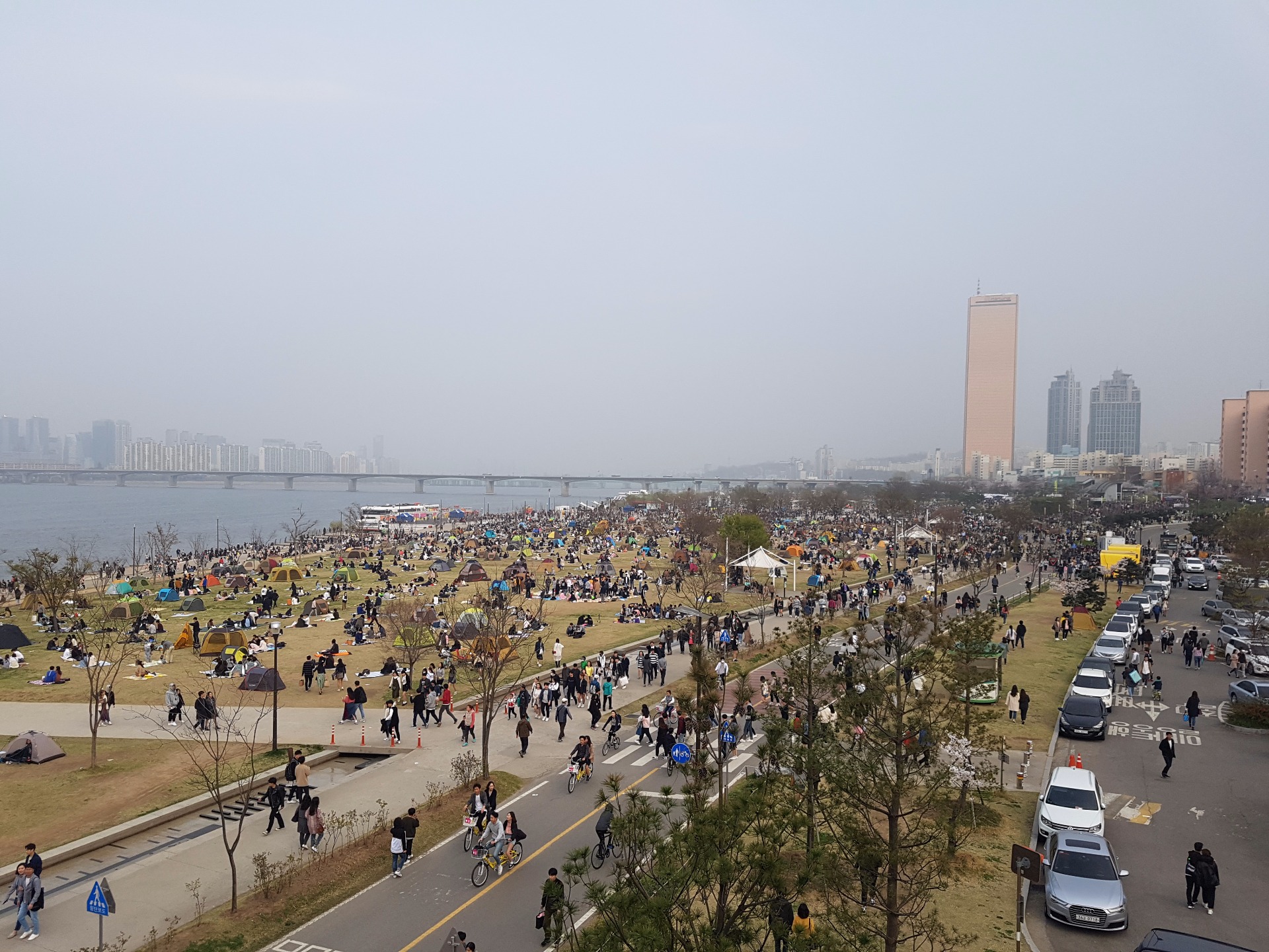 마포대교 위에요 마포대교 위에도 사람 많네요 |