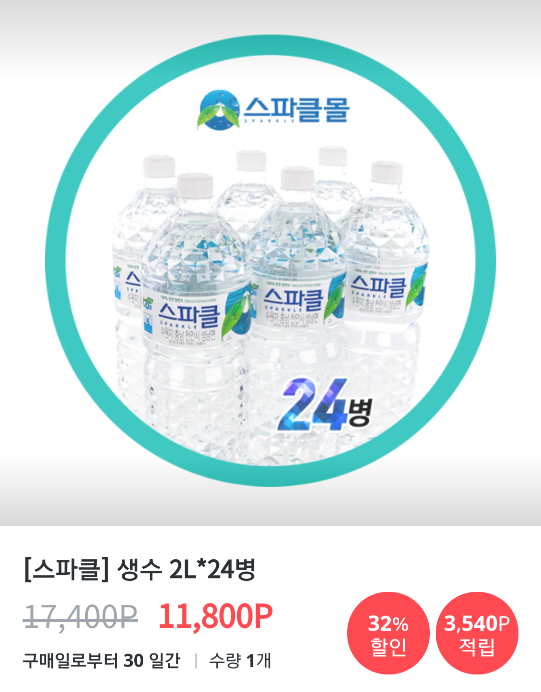 스파클몰 자체 추가증정(탄산수 or 500ml 20병) 가끔 있으니 급하지 않으신 분은 기다렸다 추가증정