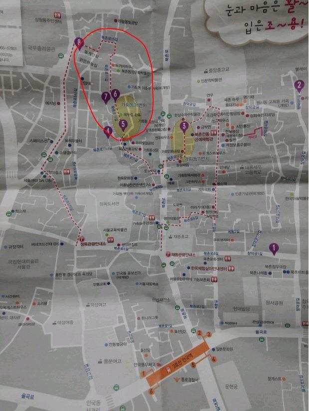 저는 북촌 딱 한번 저리 빨간색쳐진곳 가봤는데