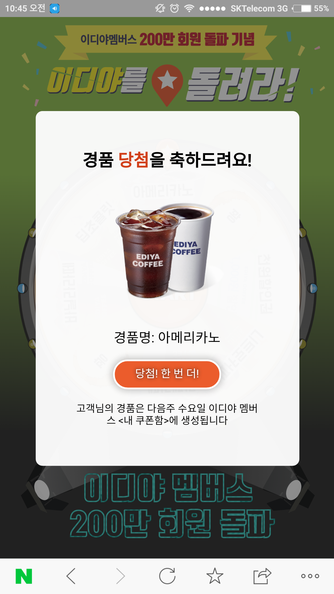 이디야커피 룰렛당첨도 되네요 > 자유게시판