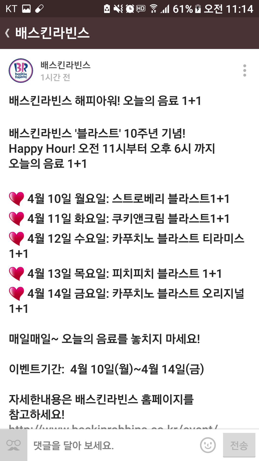 베스킨라빈스.1+1 음료 > 자유게시판