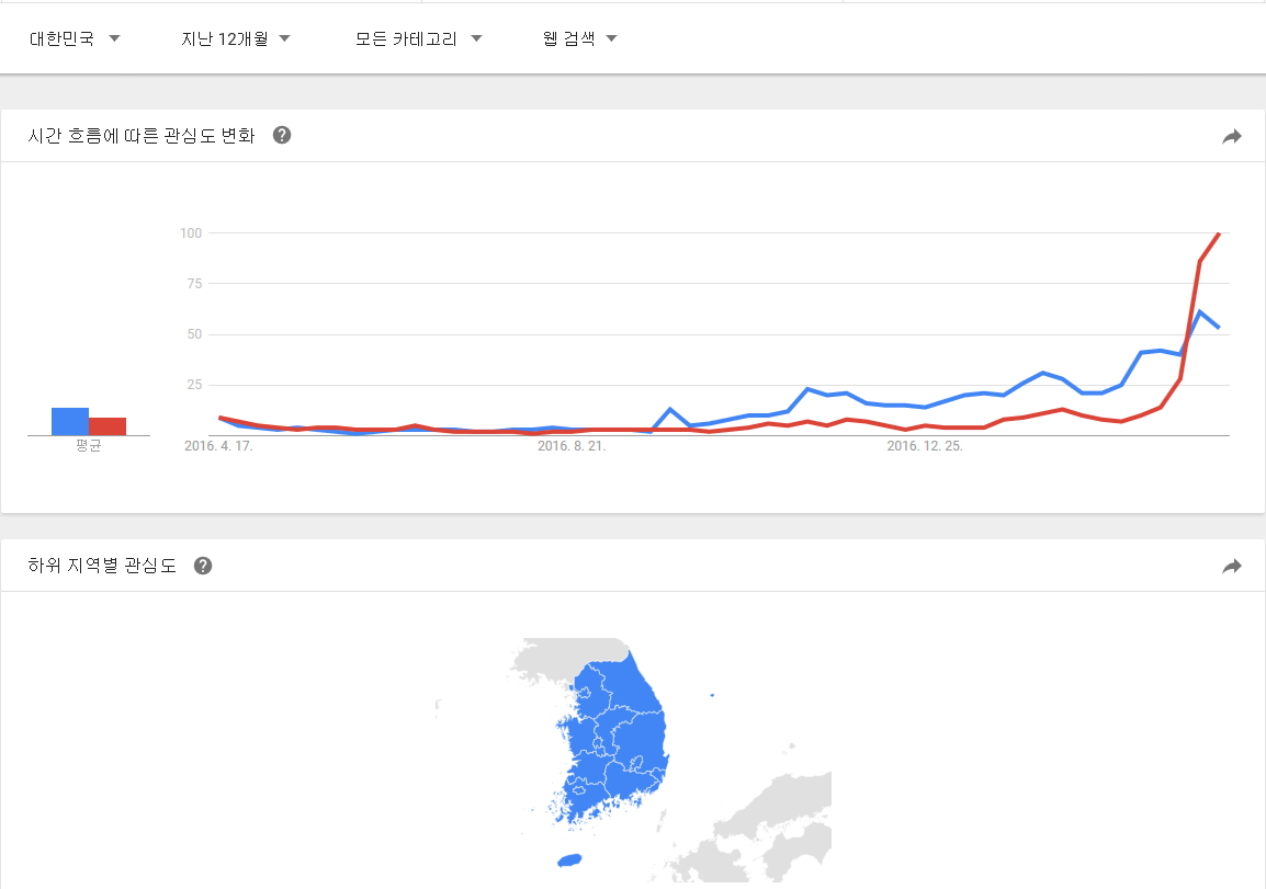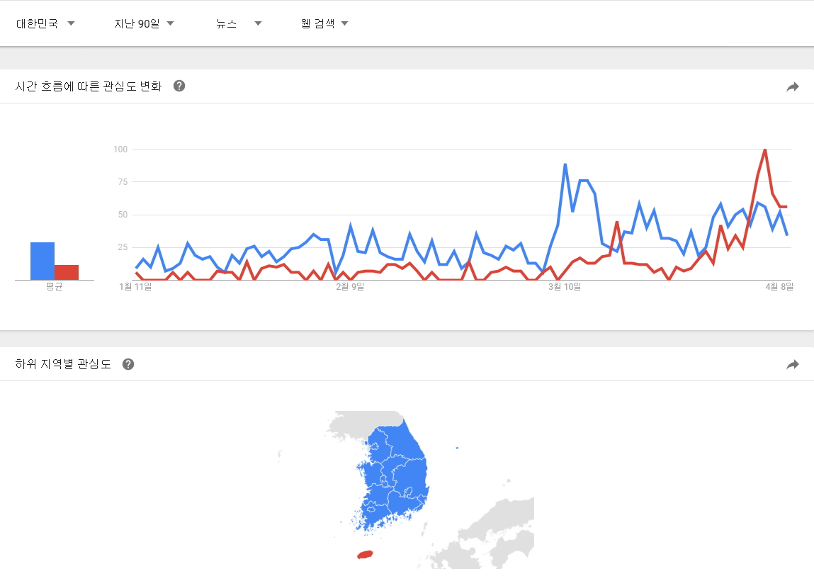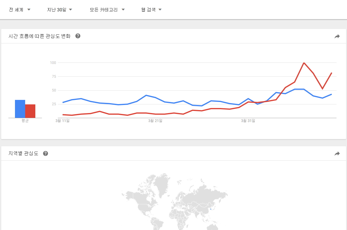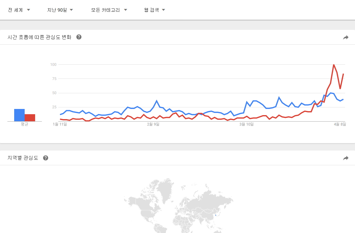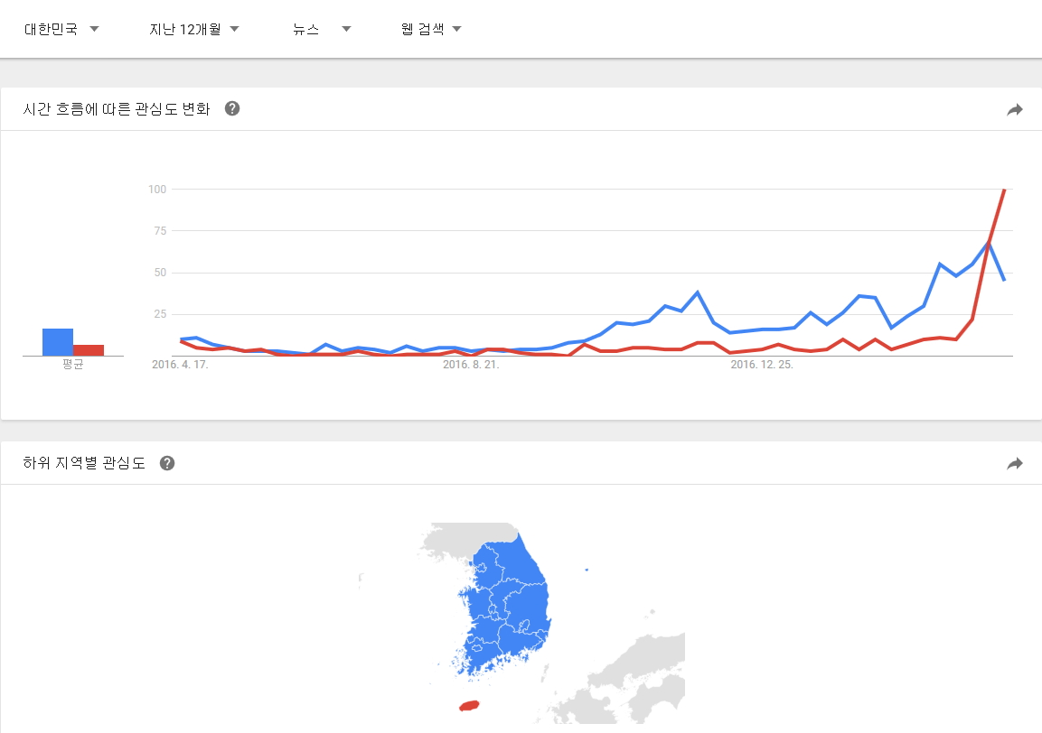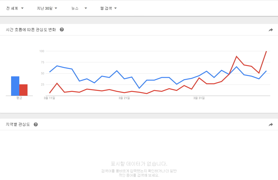 구글 트랜드에서 정의하는 뉴스 데이터 색인 기준을 모르겠지만 뉴스 제한으로 전세계, 대한민국 자료도 추가로 남깁니다. |