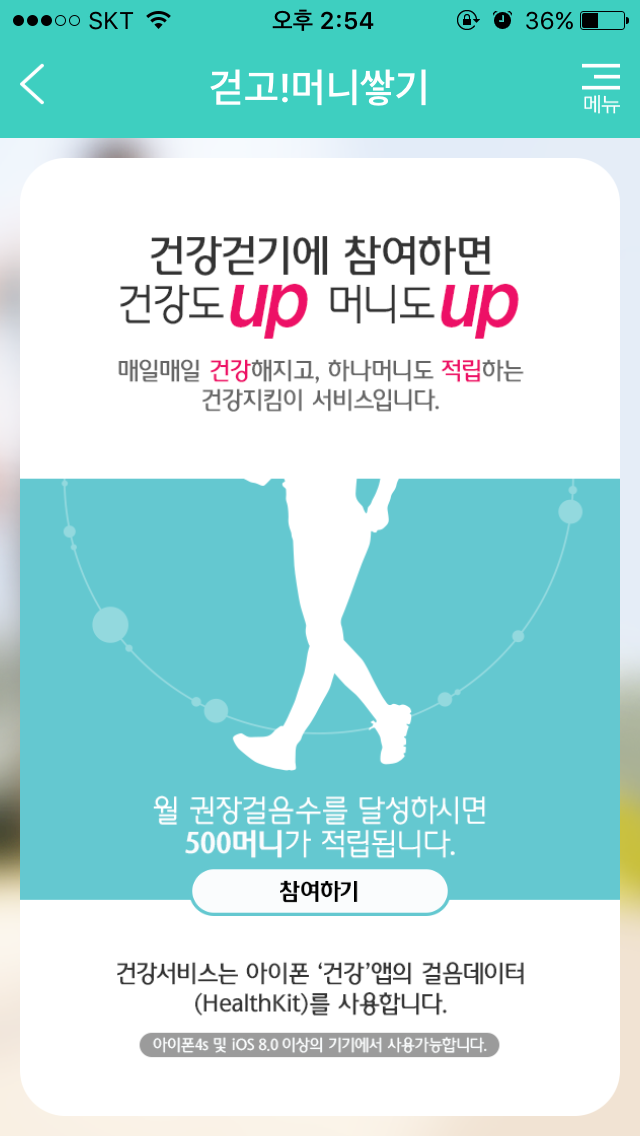 권장 걸음 달성 시 500원 준대요.