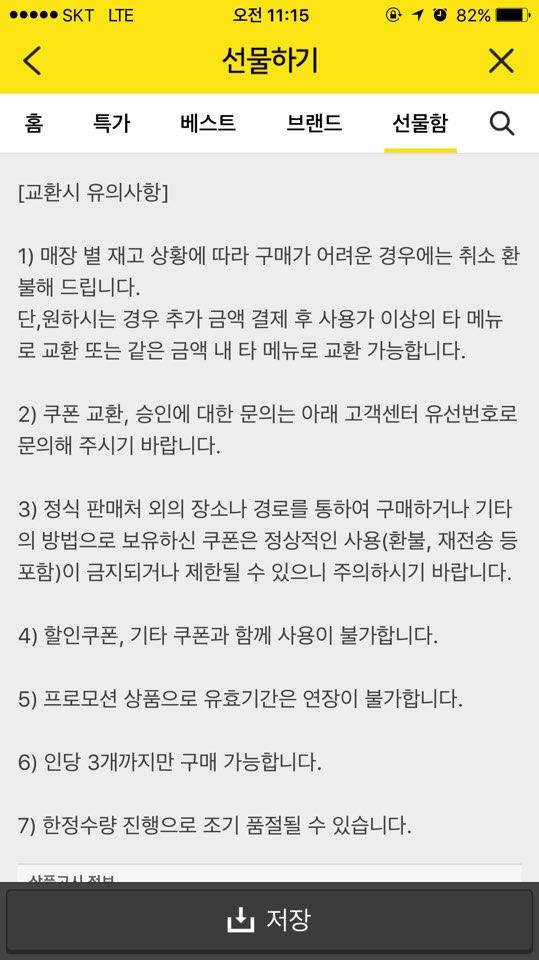 타메뉴 교환이 불가능하다고 적혀있네요. |