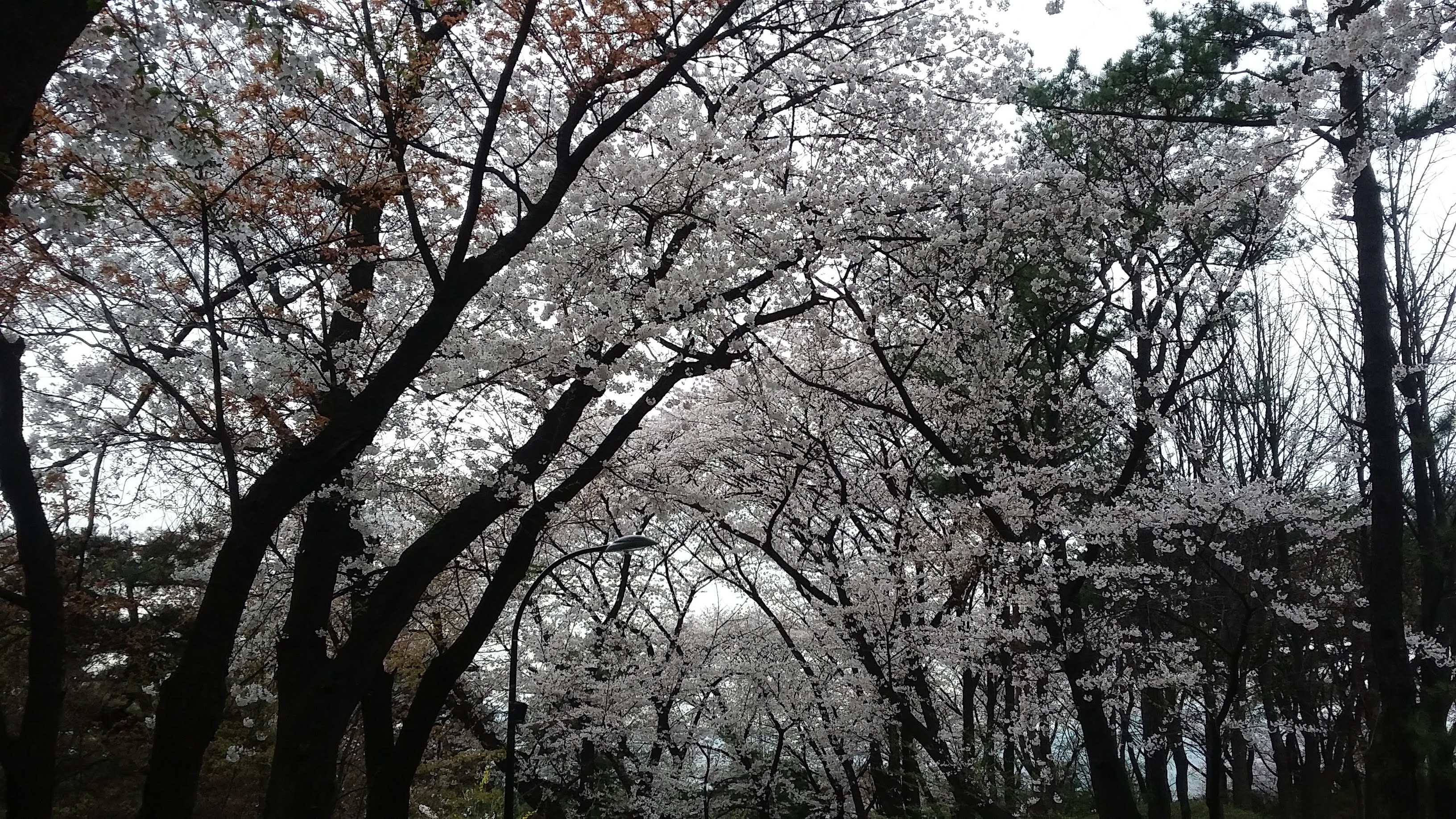 남산아래쪽 남산도서관쪽은 벚꽃 완전 절정입니다. 바닥에 떨어진 꽃잎도 조금 보이고
